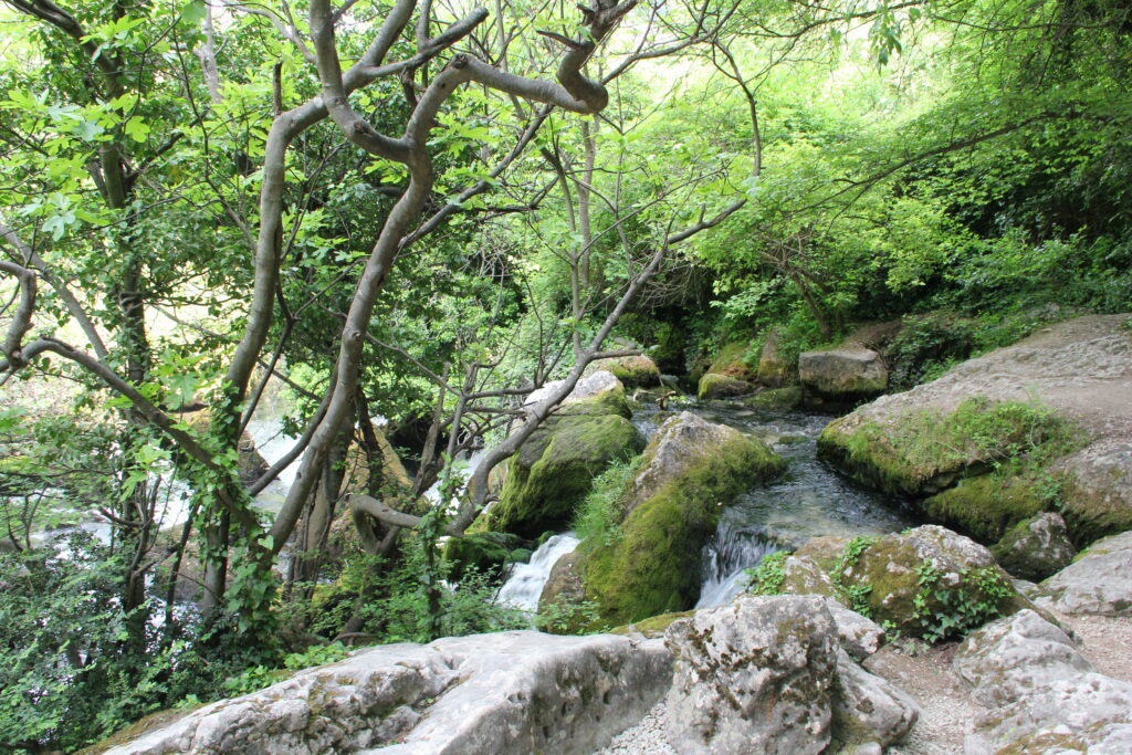 Leider war zuletzt der Zugang zum Quelltopf aus Sicherheitsgründen nicht mehr möglich, da Felssturzgefahr besteht. Ob das noch so ist, ist mir nicht bekannt. Aber auch wenn die letzten Meter nicht mehr zugänglich sind, ist der Spazierweg aus dem Ort hinaus in diese enge Schlucht wunderschön. Unterwegs kann eine historische Papiermühle besichtigt werden. Sehenswert ist auch die kleine Kirche Saint-Véran im provenzalisch-romanischen Stil.